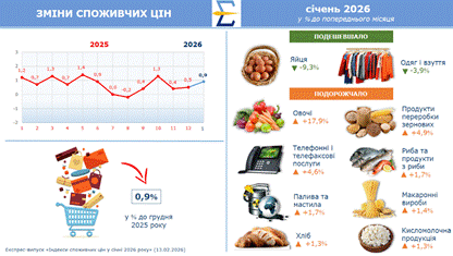 Індекси споживчих цін на товари та послуги у 2026 році (до грудня попереднього року)
