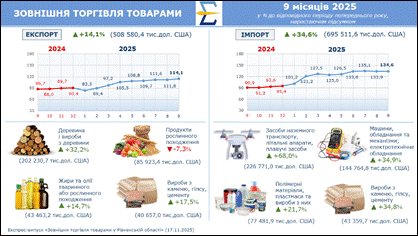 зовнішньої торгівлі Рівненської області за 9 місяців 2025 року