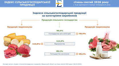 тваринництва у підприємствах за районами за січень-лютий 2026 року
